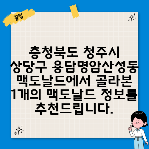 1. 맥도날드 청주금천DT점 운영시간 및 위치, 전화번호 확인 하세요!